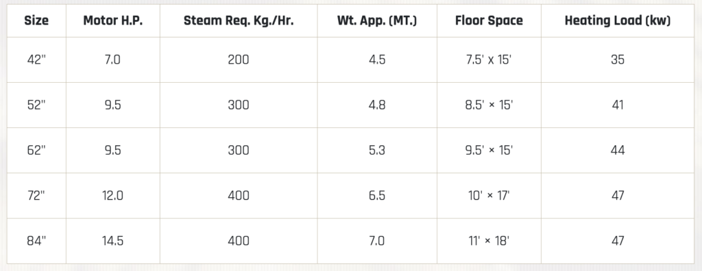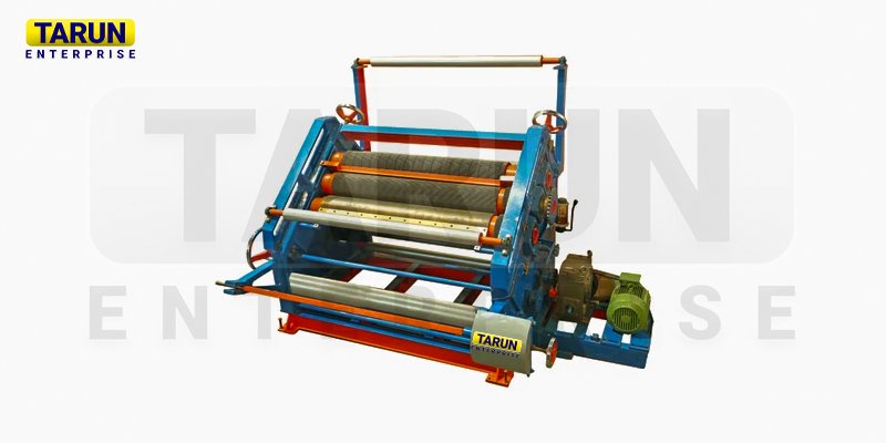 ‘Tarun Enterprise’ Brand Bearing/Bush Mounted Oblique Type Corrugation Machine For high production capacity and increased efficiency as compared to other models. Rolls are mounted on roller bearing for smooth running & longer life. ‘Tarun Enterprise’ Brand Bearing/Bush Mounted Oblique Type Corrugation Machine is provided with gum tray movement device which becomes operational when gum unit is disengaged from rollers. ‘Tarun Enterprise’ Brand Bearing/Bush Mounted Oblique Type Corrugation Machine is recommended to be used on steam heating or thermic fluid heating. Approximate output of machine is 110rtf/min.